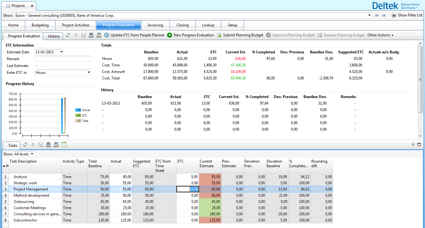 For fixed-price projects, it is particularly important that you measure progress regularly. This allows you to act proactively if project tasks take longer than estimated in the baseline budget.