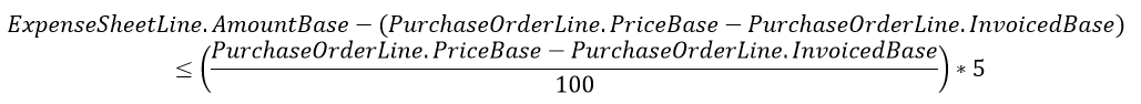| Expense Sheet Line | Amount, Base | Outside Margin | 10 | 5% | Purchase Order Line | Price, Base | |||