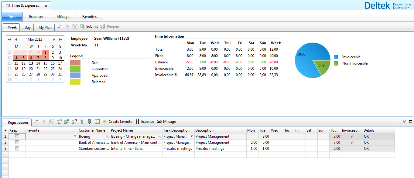An intuitive and user-friendly time and expense module is available for end-users, allowing employees to easily enter time on a weekly or daily basis.