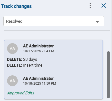 new workspace editor, the change content now displays without a track change in-line indicator.
