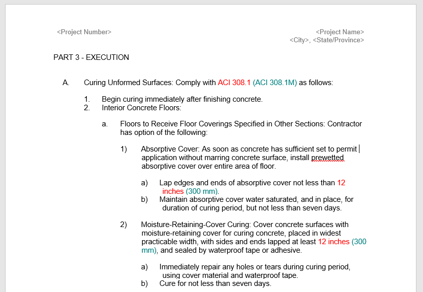 • The file must follow the approved MasterSpec template. This includes, but is not limited to, sections having a three-part structure and a maximum of five paragraph levels.