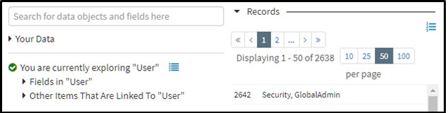 the total number of records is indicated at the top of the Records pane. There are 2638 individuals. This is every user in the database.
