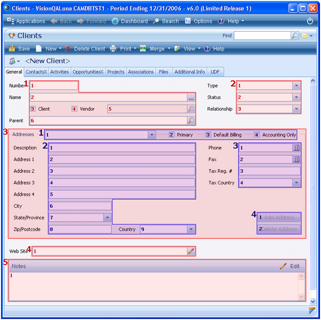 The example below displays the initial field groups for the sample screen, and the tab indexes of each field within the group.