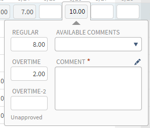 - To enter a comment for the hours (or even if you enter no hours for the day and row), click